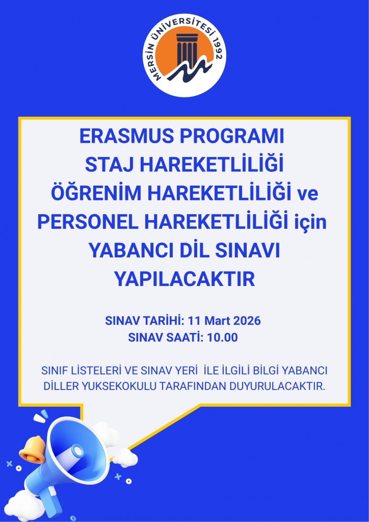 10.06.2023 tarihi saat 11:00' da Mersin ilinde yapılacak olan Ek MEÜYÖS Sınavı için;