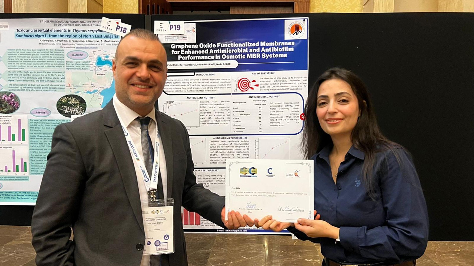 Üniversitemiz Sağlık Bilimleri Fakültesi Ebelik Bölümü öğretim üyesi Prof. Dr. Gözde Gökçe İsbir ve yüksek lisans öğrencisi Uzm. Ebe Dudu Naz Dur, 3. Uluslararası 5. Ulusal Doğuma Hazırlık Eğitimi ve Eğiticiliği Kongr