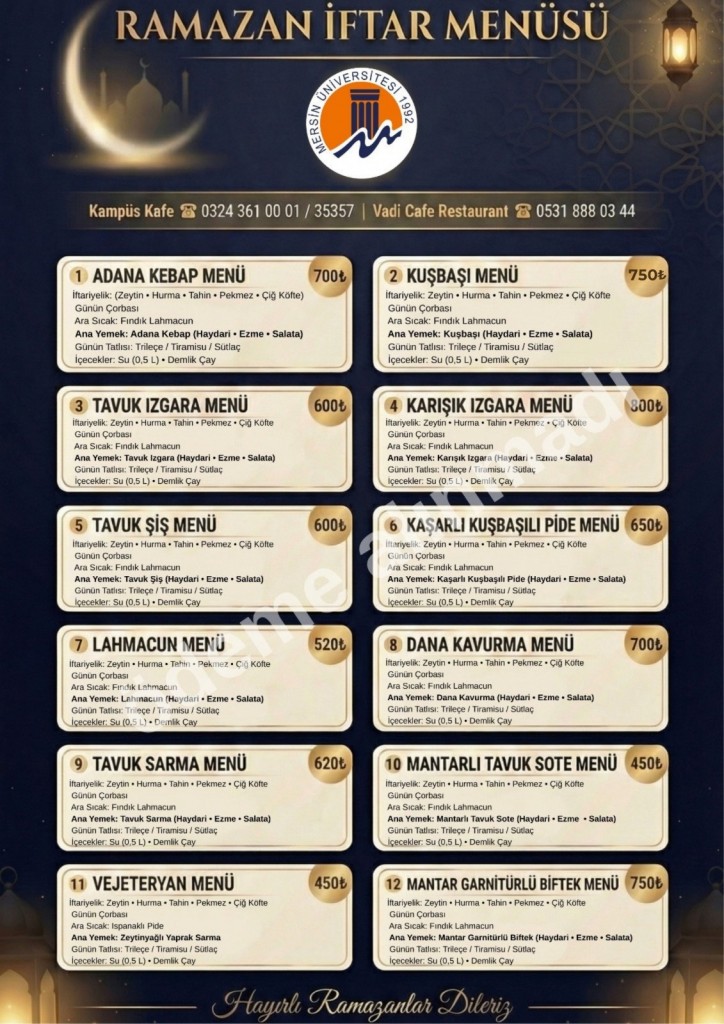 Kampüs Kafe ve Vadi Restoran'da Ramazan Ayı Süresince Uygulanacak İftar Menüleri
