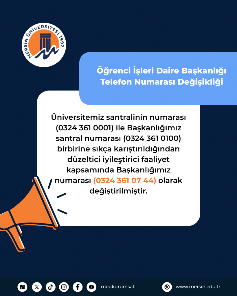 Öğrenci İşleri Daire Başkanlığı Telefon Numarası Değişikliği