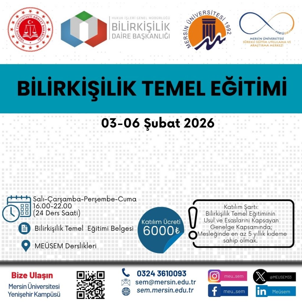 Mersin Üniversitesi Genç Girişimci Uygulama ve Araştırma Merkezi (Girişim Limanı) tarafından 02–06 Şubat 2026 tarihleri arasında “Endüstride Dijital Dönüşüm ve Yapay Zekâ Sistem Entegrasyonu Eğitimi” düzenlenecektir.